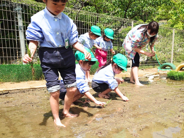 山や森に囲まれた環境の中で山散策や様々な栽培活動などを通し自然に触れ、子どもたちの生きる力を育みます。